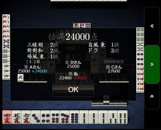 昨日は同一半荘で同一人物が